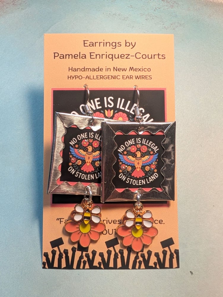 ¡Politicos! ~ "Facism Thrives on Silence!" ~ No One Is Illegal on Stolen Land! ~ Tin Earrings
