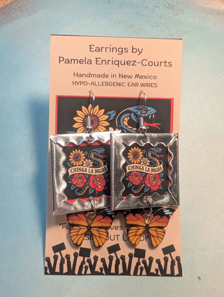¡Politicos! ~ "Facism Thrives on Silence!" ~ Chinga La Migra! ~ Tin Earrings #2