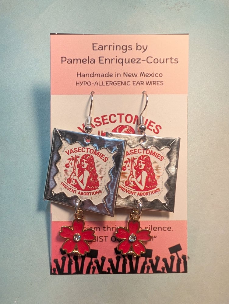 ¡Politicos! ~ "Facism Thrives on Silence!" ~ Vasectomies Prevent Abortion! ~ Tin Earrings