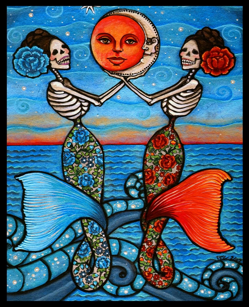 ¡SIRENAS! ~ 8x10 Art Print ~ El Sol, La Luna y Las Sirenas